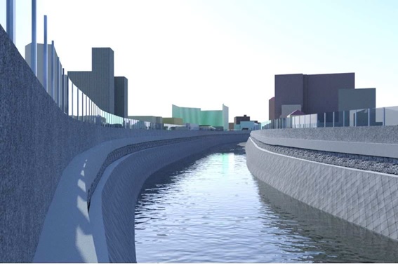 | 工事内容 | 事延長(右岸)L=660.7m (左岸)L=646.1m 自立式特殊堤防一式 仮設工一式 吐口工一式 舗装工一式 水路工一式 他 |